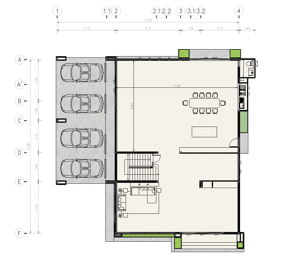 - พื้นที่ใช้สอยรวม 475 ตารางเมตร