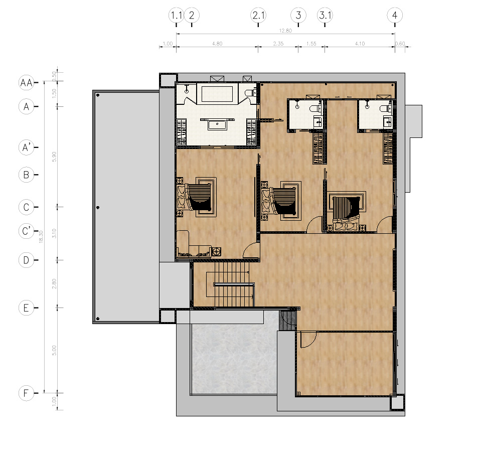 แบบบ้าน 2ชั้น / พื้นที่ใช้สอย 475 ตร.ม./ 3ห้องนอน / 4ห้องน้ำ