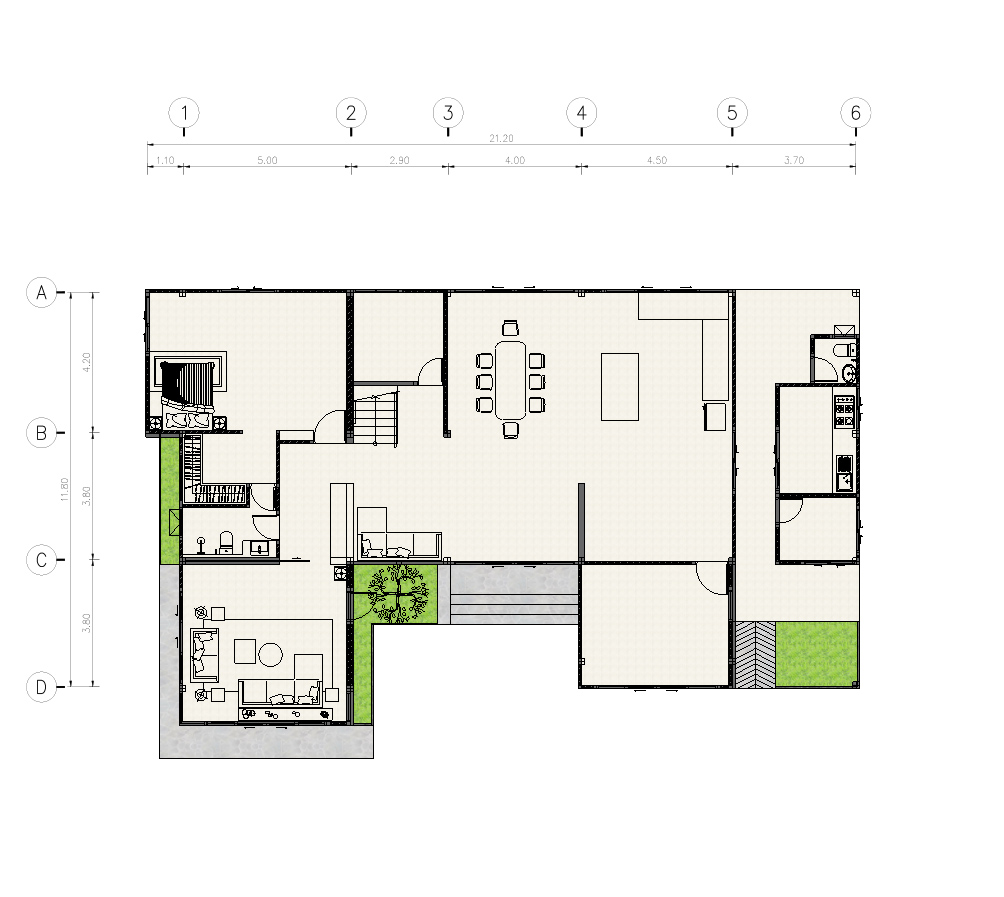 - พื้นที่ใช้สอยรวม 420 ตารางเมตร