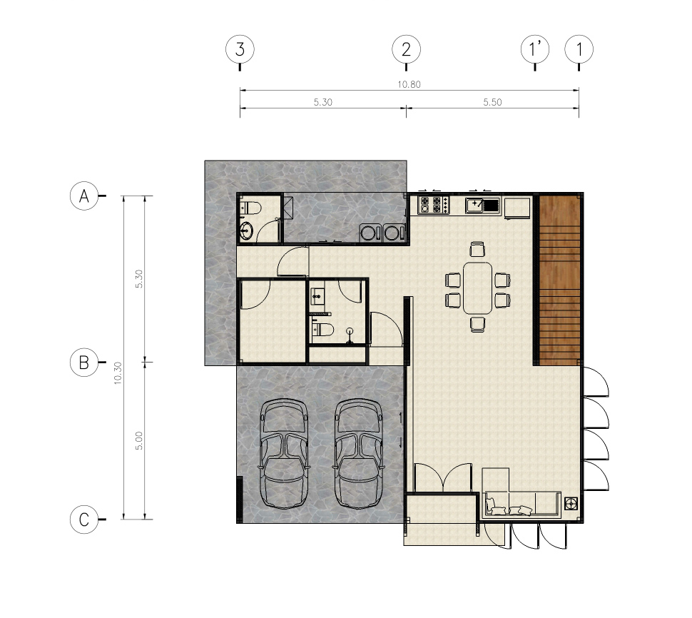 รายละเอียด | จอดรถ | รับแขก | เตรียมอาหาร | ห้องนอนแม่บ้าน | ห้องน้ำ 1 | ห้องน้ำ 2 | เก็บของ |