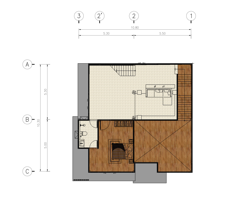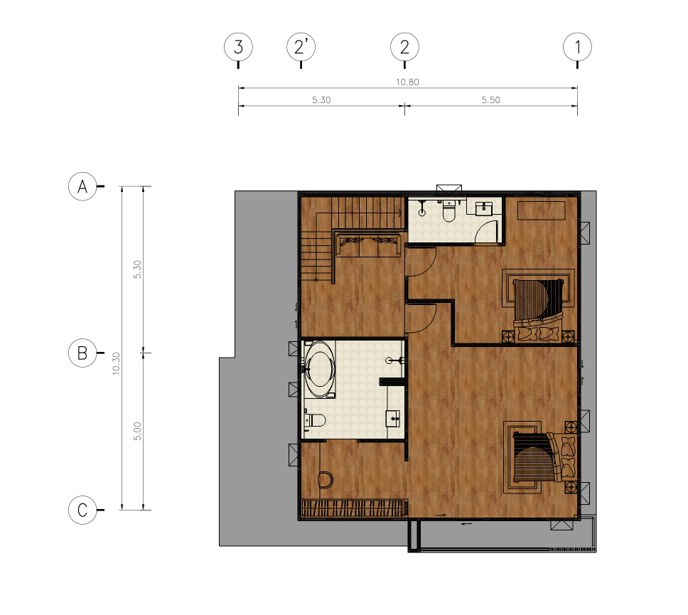 - พื้นถึงฝ้าเพดาน ชั้น 2 2.80 เมตร