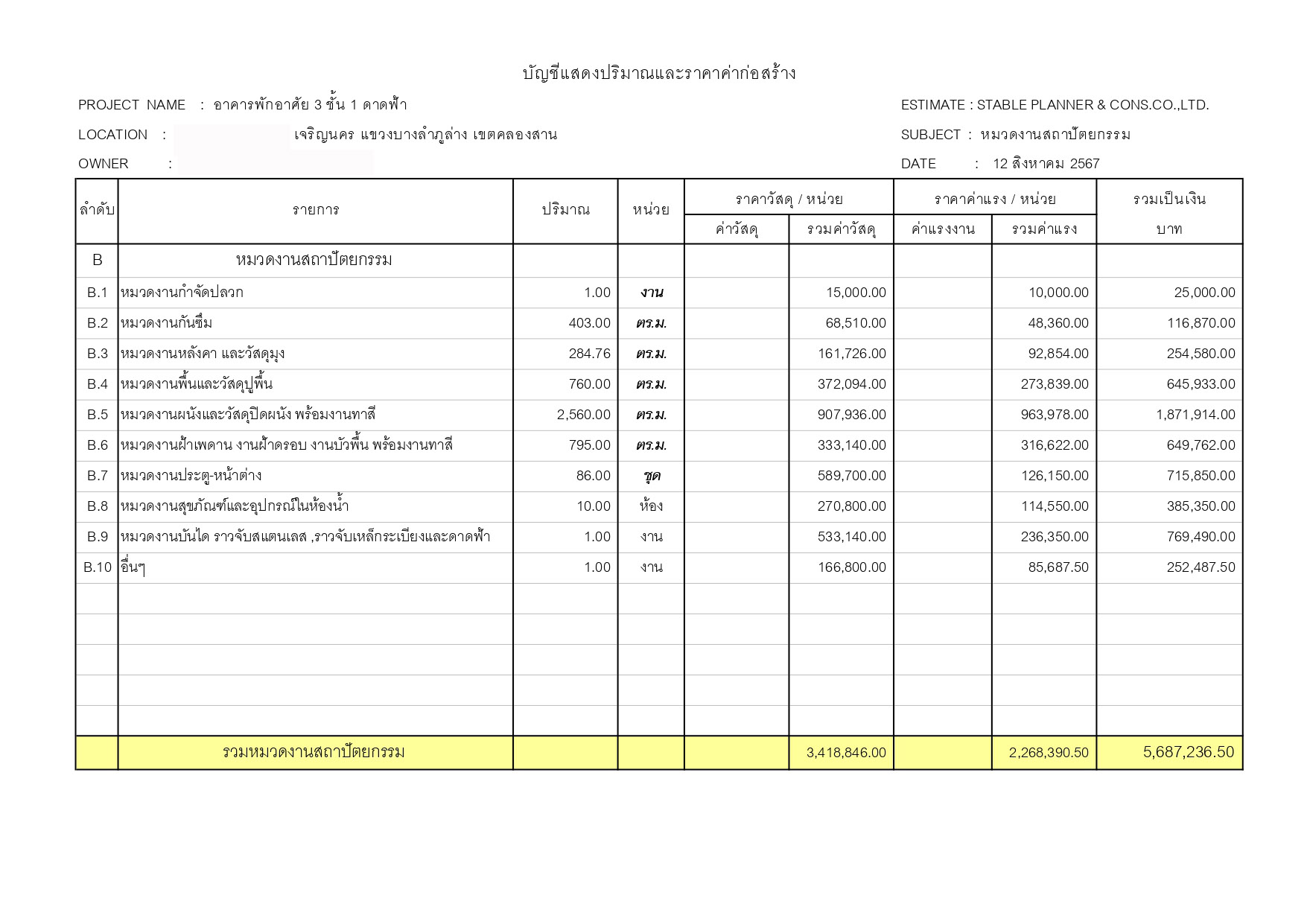 - บริการจัดทำ BOQ บัญชีแสดงปริมาณงานและราคา